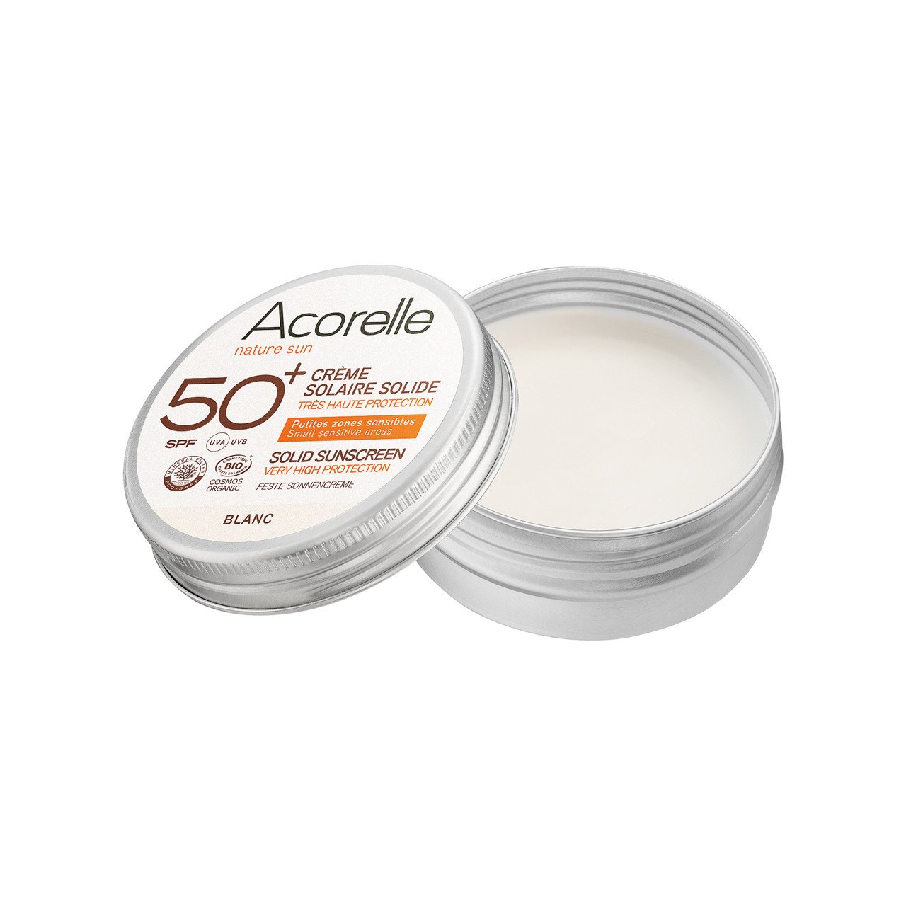 Crème solaire solide blanche SPF50+, Cosmetique Bio – COSMOS ORGANIC