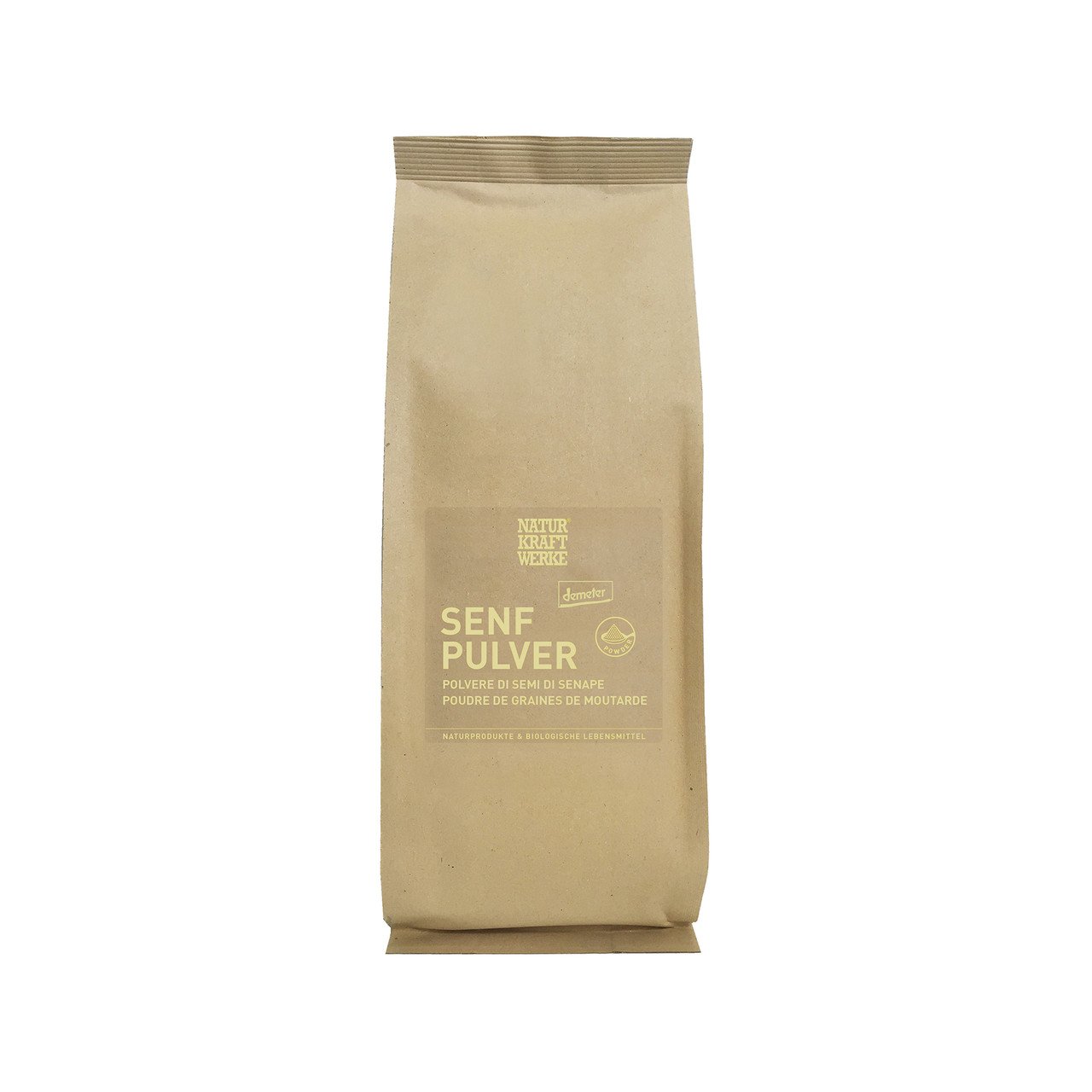 Dans l’huilerie de l’Oberland zurichois, les graines de moutarde Demeter jaunes, Ă teneur contrĂ´lĂ©e en acide Ă©rucique, sont pressĂ©es Ă froid avec prĂ©caution pour obtenir de l’huile de moutarde. Ensuite, les rĂ©sidus partiellement dĂ©shuilĂ©s issus du processus « huilier » de NaturKraftWerke sont moulus en douceur pour obtenir cette poudre. La moutarde jaune ou blanche (Sinapis alba) a une expression culinaire et un goĂ»t plus doux que les moutardes brunes ou noires. La farine de moutarde jaune elle-mĂŞme n’est guère piquante. Ce n’est qu’au contact de l’eau et des autres ingrĂ©dients d’une masse de moutarde que se dĂ©veloppe un certain piquant, qui peut encore ĂŞtre renforcĂ© par d’autres ingrĂ©dients. La moutarde est ancestrale en Europe et, avant la dĂ©couverte de piments « exotiques » comme le poivre ou le piment, elle Ă©tait la source de piquant dans les prĂ©parations culinaires de l’AntiquitĂ© et ce, bien avant le Moyen Ă‚ge.