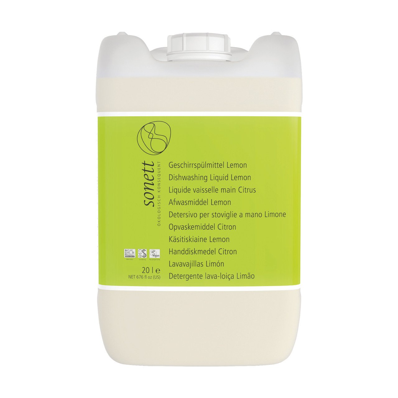 Tensioactif de sucre 5-15%, sulfate d’alcool gras de coco 1-5%, alcool végétal (éthanol) 1-5%, sel de cuisine <1%, citrate <1%, huile essentielle naturelle de lemongrass* <1%, additifs balsamiques*/**** <1%, eau tourbillonnée ad 100%. Légende: * Biologique, ** Bourgeon, *** Demeter, **** issu de la cueillette sauvage certifiée bio